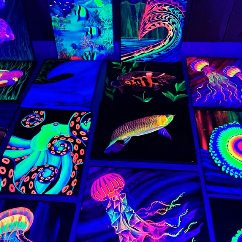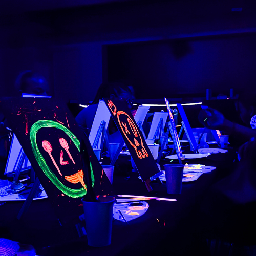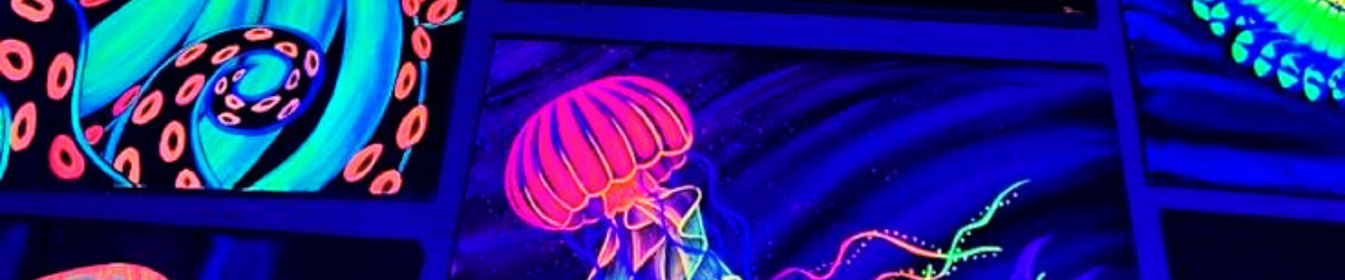 Peignez sous lumière noire, guidé par un peintre expérimenté, avec musique & ambiance.